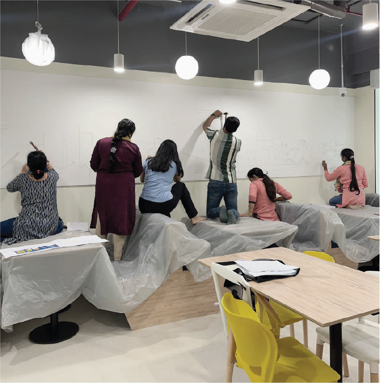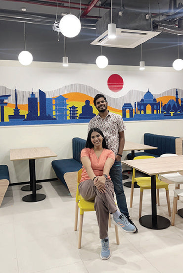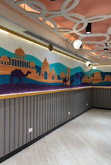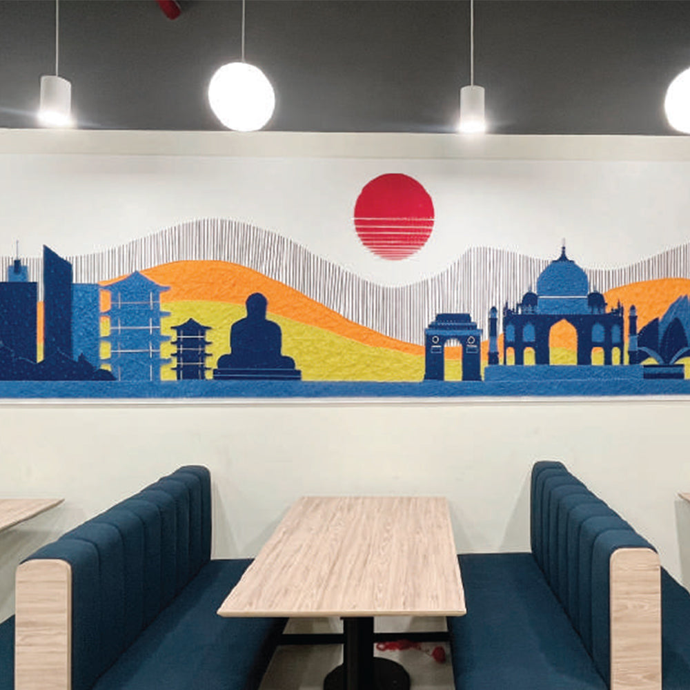 Uniqlo India’s newly made office needed a mural that speaks about the brand's ideology and its entry into the Indian market. The idea was to create something that indicates the journey of Japanese culture coming to India. (LOCATION: DLF CYBER CITY, GURGAON)